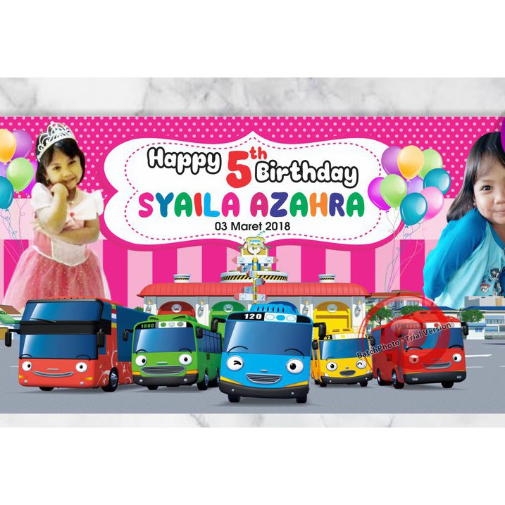 New Backdrop Ultah Banner Ulang Tahun Tema Tayo Cewek Gratis Design