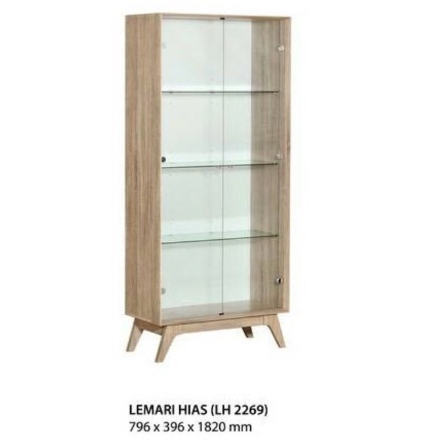 Jual Lemari Hias Surabaya Kaca Kayu Jati Minimalis Natural Zavid