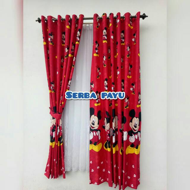 Gorden Mickeymouse Karakter Anak Merah Tirai Jendela Pintu Dekorasi Kamar Anak Palingbaru
