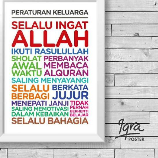 Zdw 315 Poster Motivasi Keluarga Islami Family Rules Hiasan Dinding Pigura Bingkai