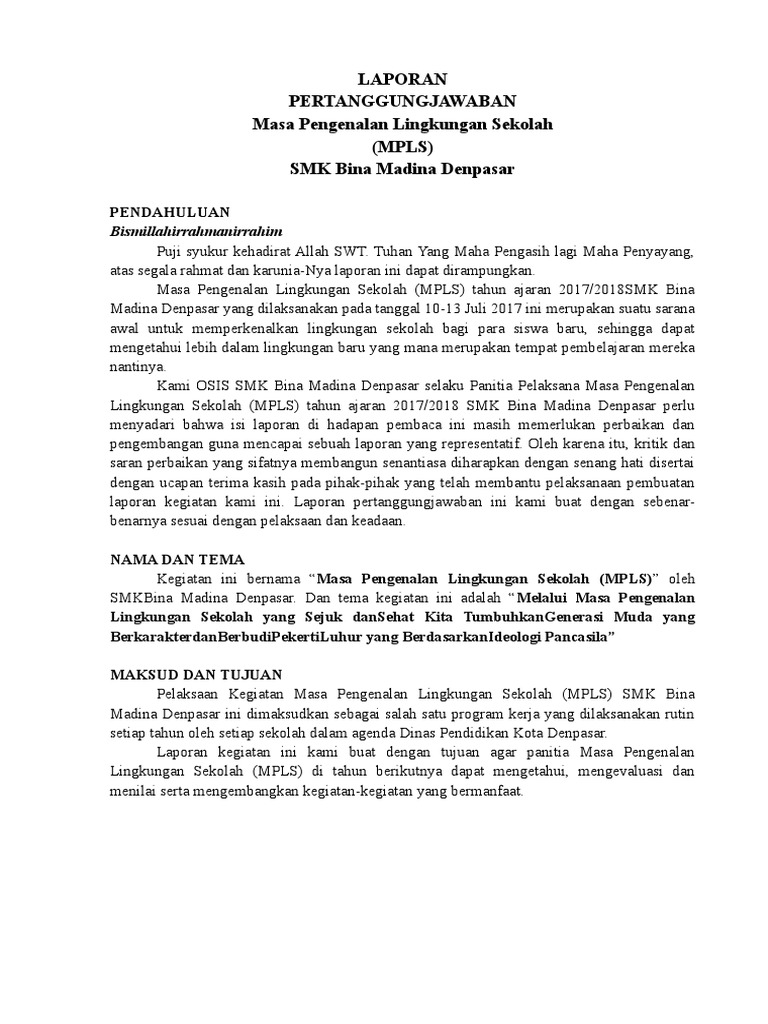 Contoh Proposal Kegiatan Masa Orientasi Siswa Mos Smk Karya