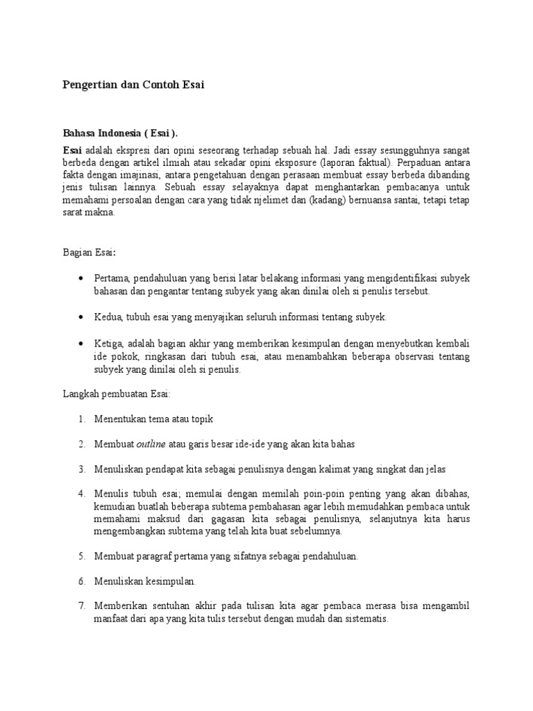Pengertian Esai Ciri Jenis Struktur Langkah Pembuatan Contoh