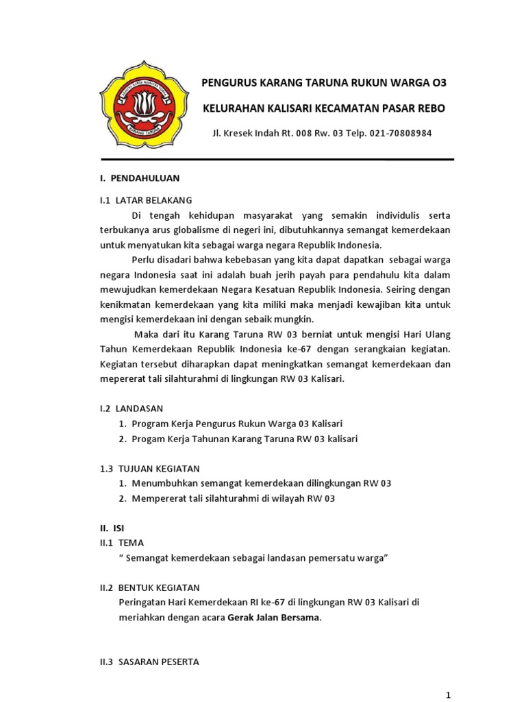 Contoh Proposal 17 Agustus Hut Kemerdekaan Ri Ke 74 Tingkat Rt