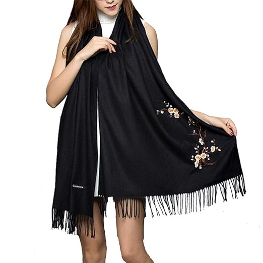 Womens Floral Black Dress Scarf Elegant Evening Shawls Wraps Solid