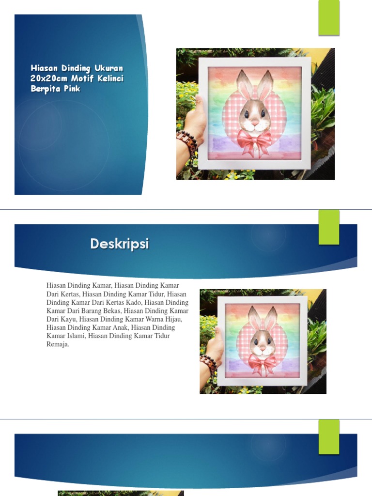 Hiasan Dinding Ukuran 20x20cm Motif Kelinci Berpita Pink