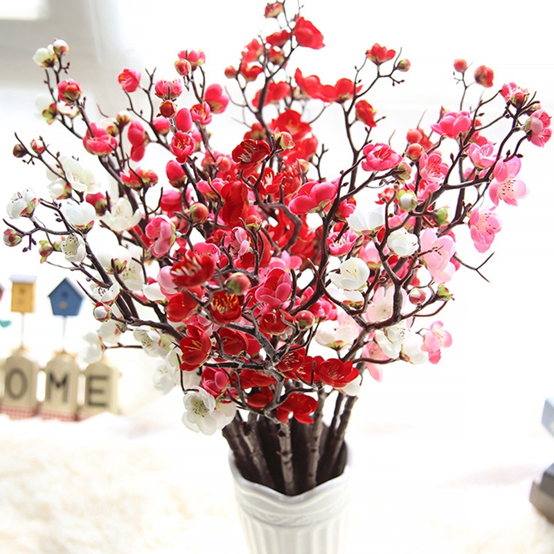 1 Buket Bunga Plum Blossom Model Imitasi Bahan Sutra Untuk Pesta Pernikahan