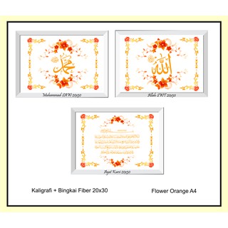 Kaligrafi Al Fatehah Ayat Kursi Motif Al Quran Bingkai Emas 37x47