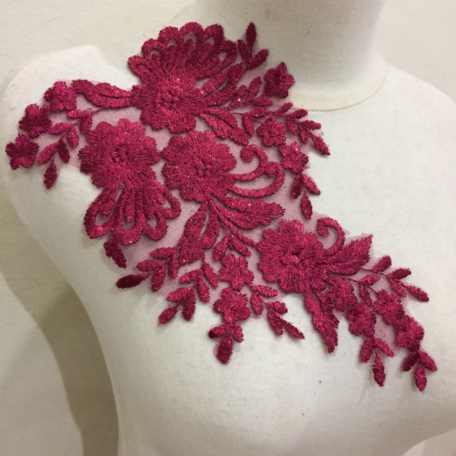 Aplikasi Brokat Hiasan Kebaya Dress Warna Merah Hati