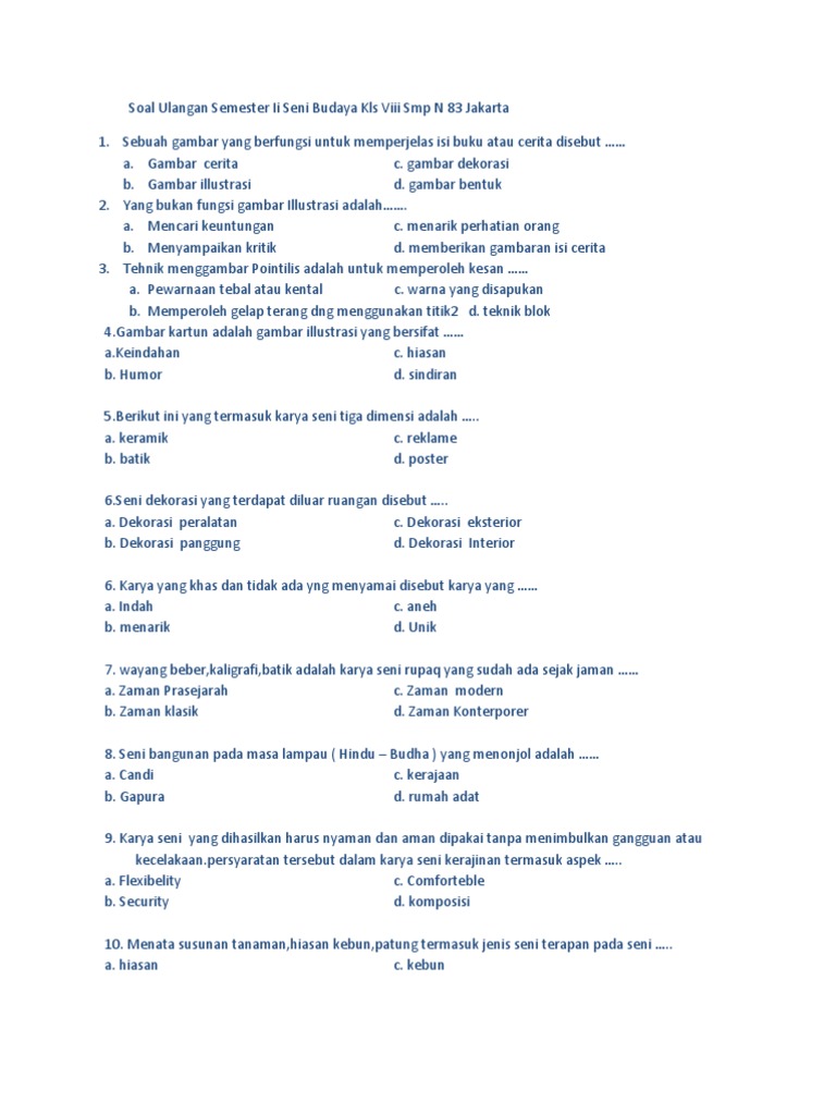 Soal Ulangan Semester Ii Seni Budaya Kls Viii Smp N 83 Jakart