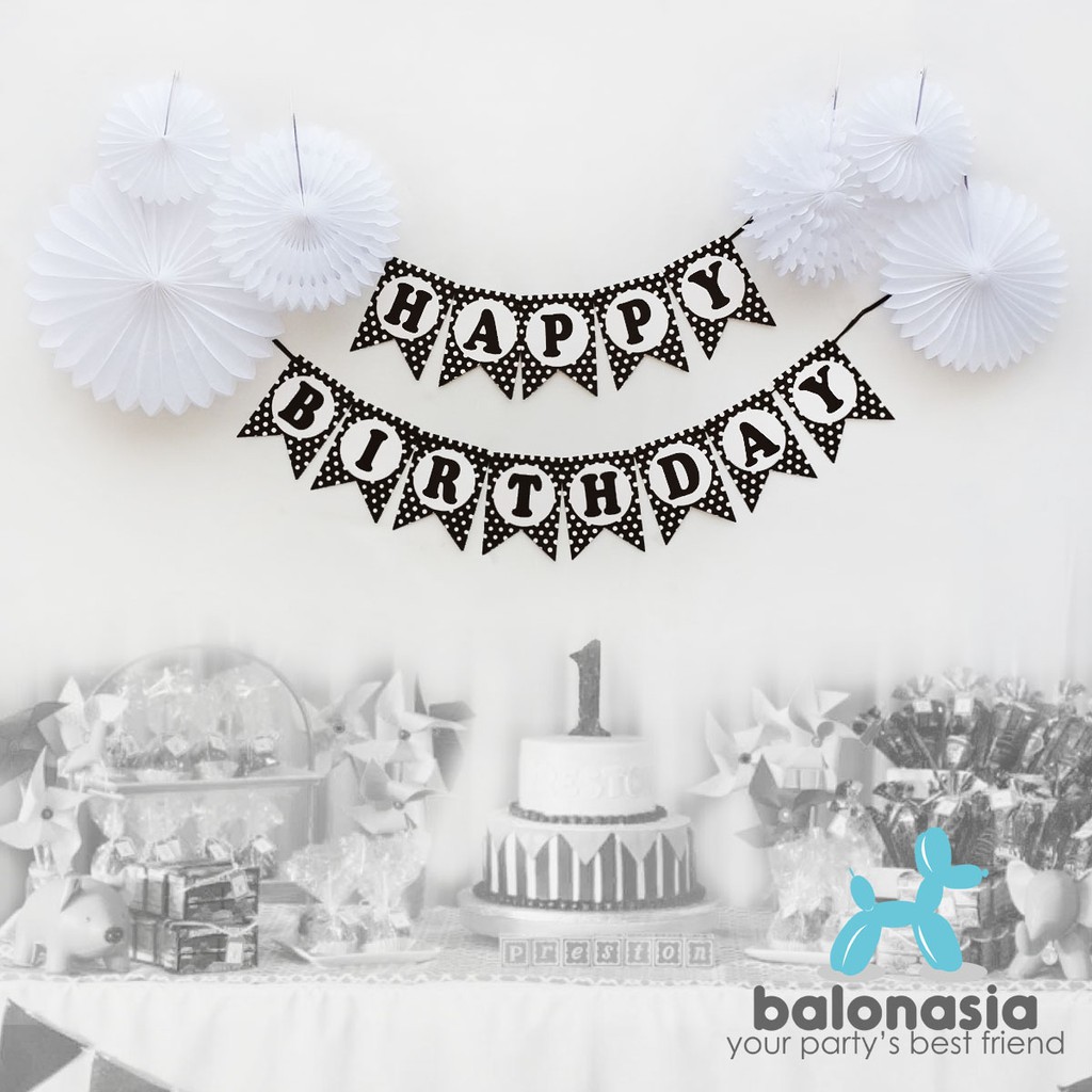Balonasia Dekorasi Backdrop Set Ulang Tahun Hitam Polka