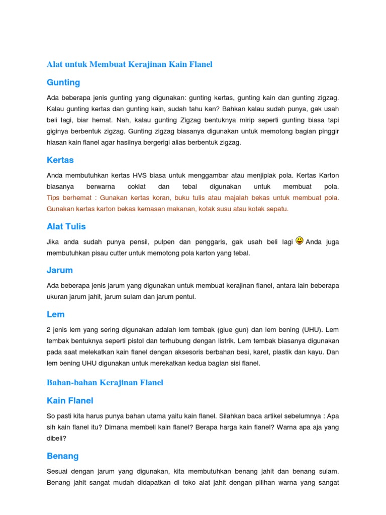 Alat Untuk Membuat Kerajinan Kain Flanel