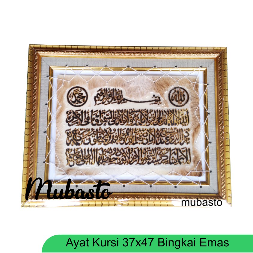 Kaligrafi Ayat Kursi Simpel Bingkai Emas Fiber 37x47 Pajangan Hiasan Dinding Frame Gold